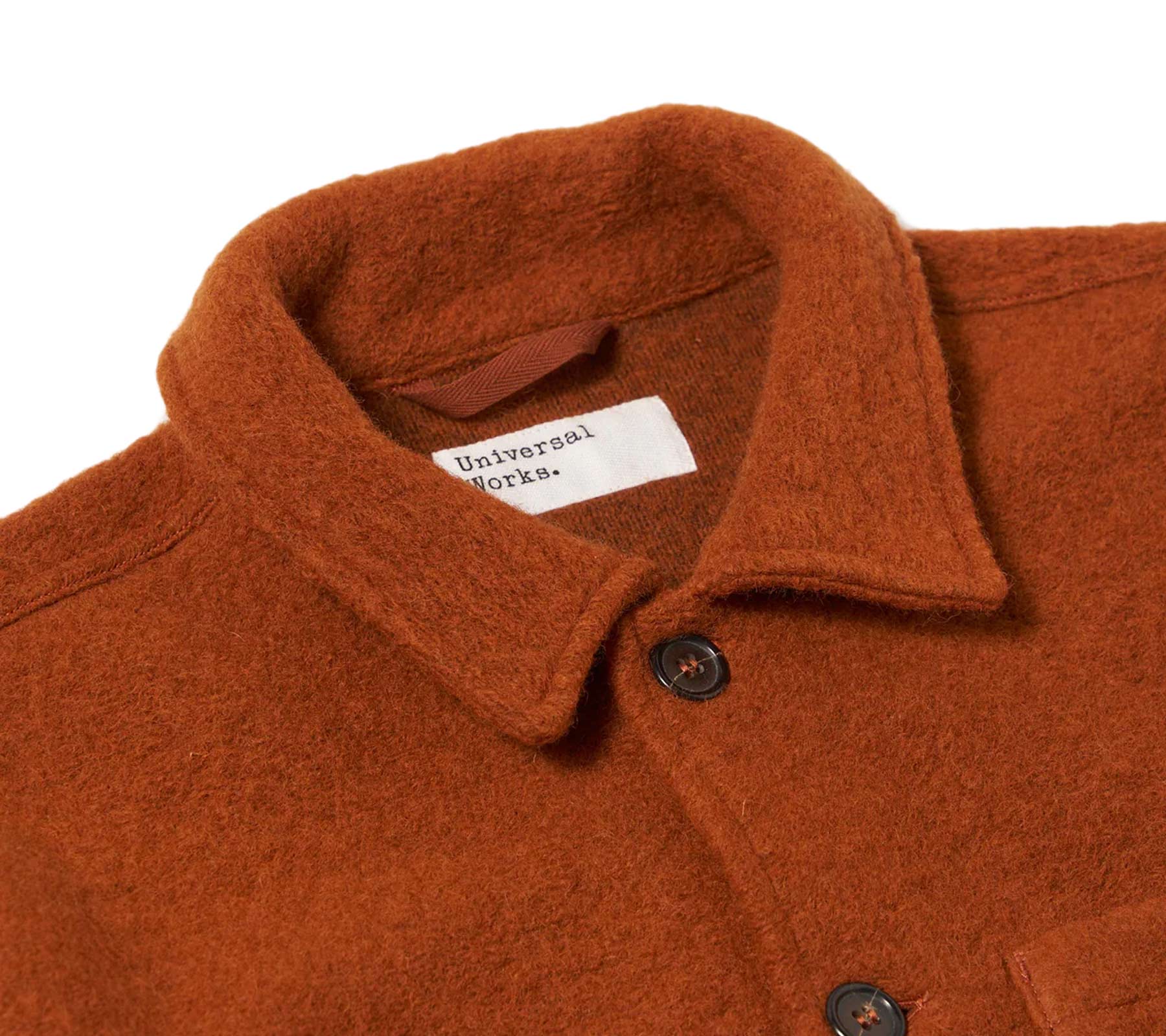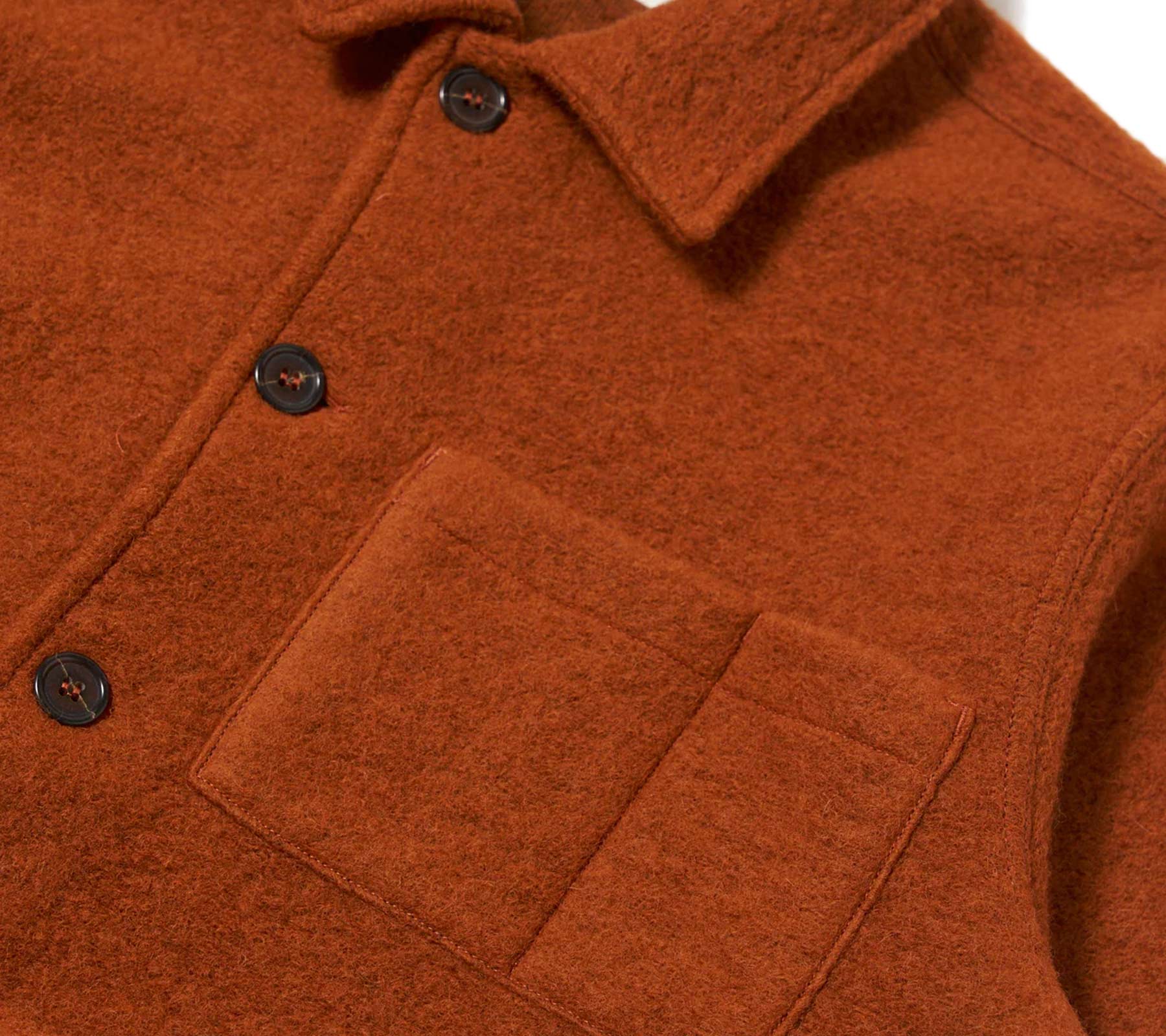A short, boxy, jacket style with patch pocket detailing, more akin to a collared cardigan. Features a button front, regular fit that sits at waist, pronounced front pockets and split chest pocket.