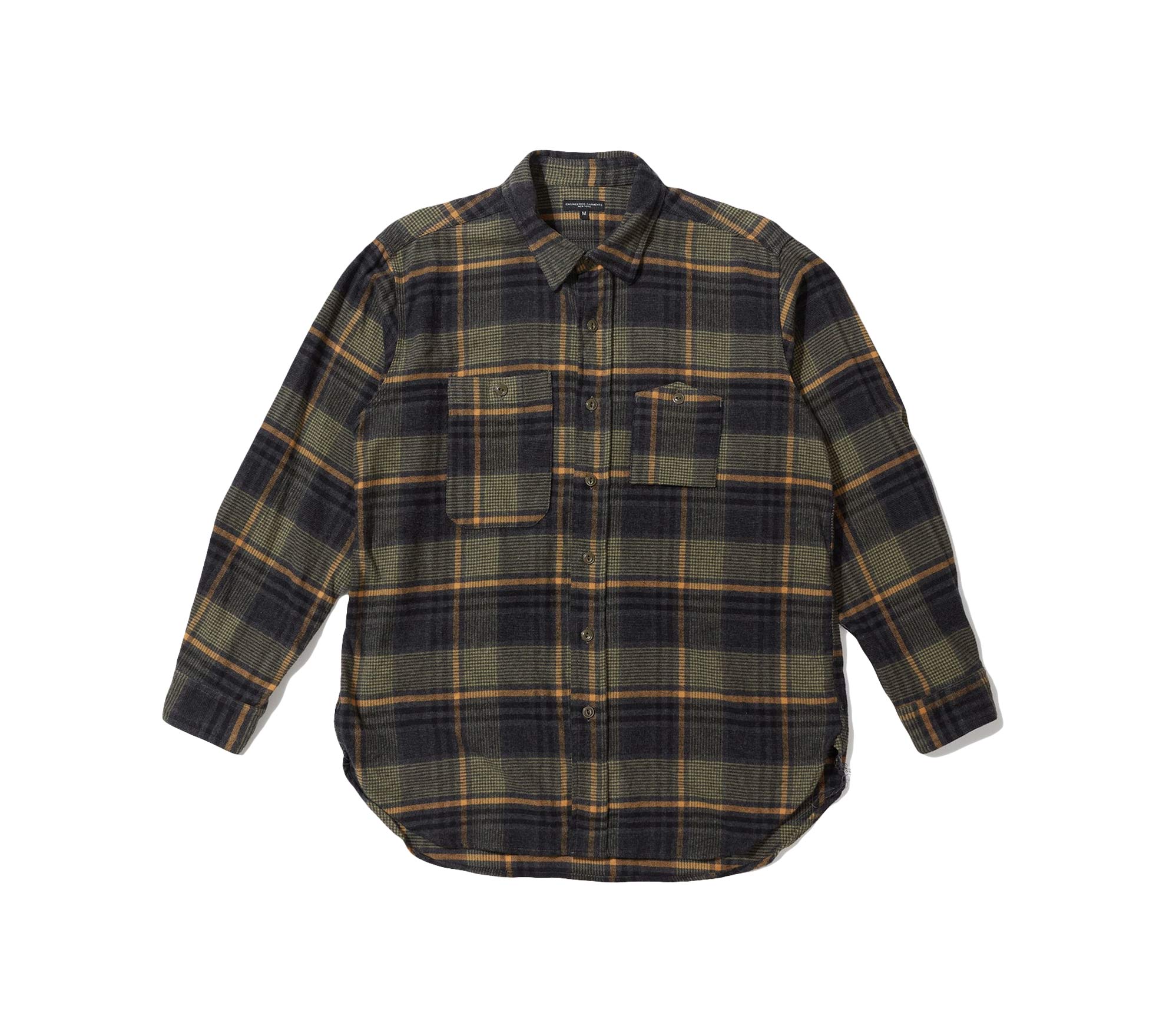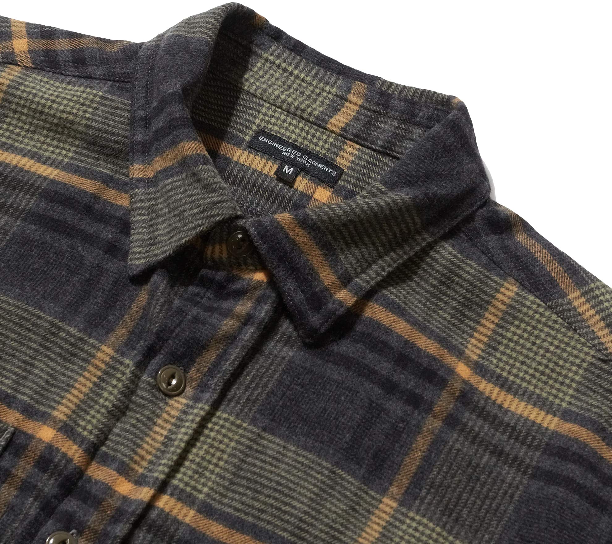 A classic piece in the Engineered Garments collection, the EG Work Shirt is an interpretation of a vintage workers shirt, with a signature Daiki Suzuki twist in the details: reinforced elbow patches, asymmetric chest pockets, etc. This season's model is made from a midweight 100% cotton in a plaid pattern. Fits slightly oversized.