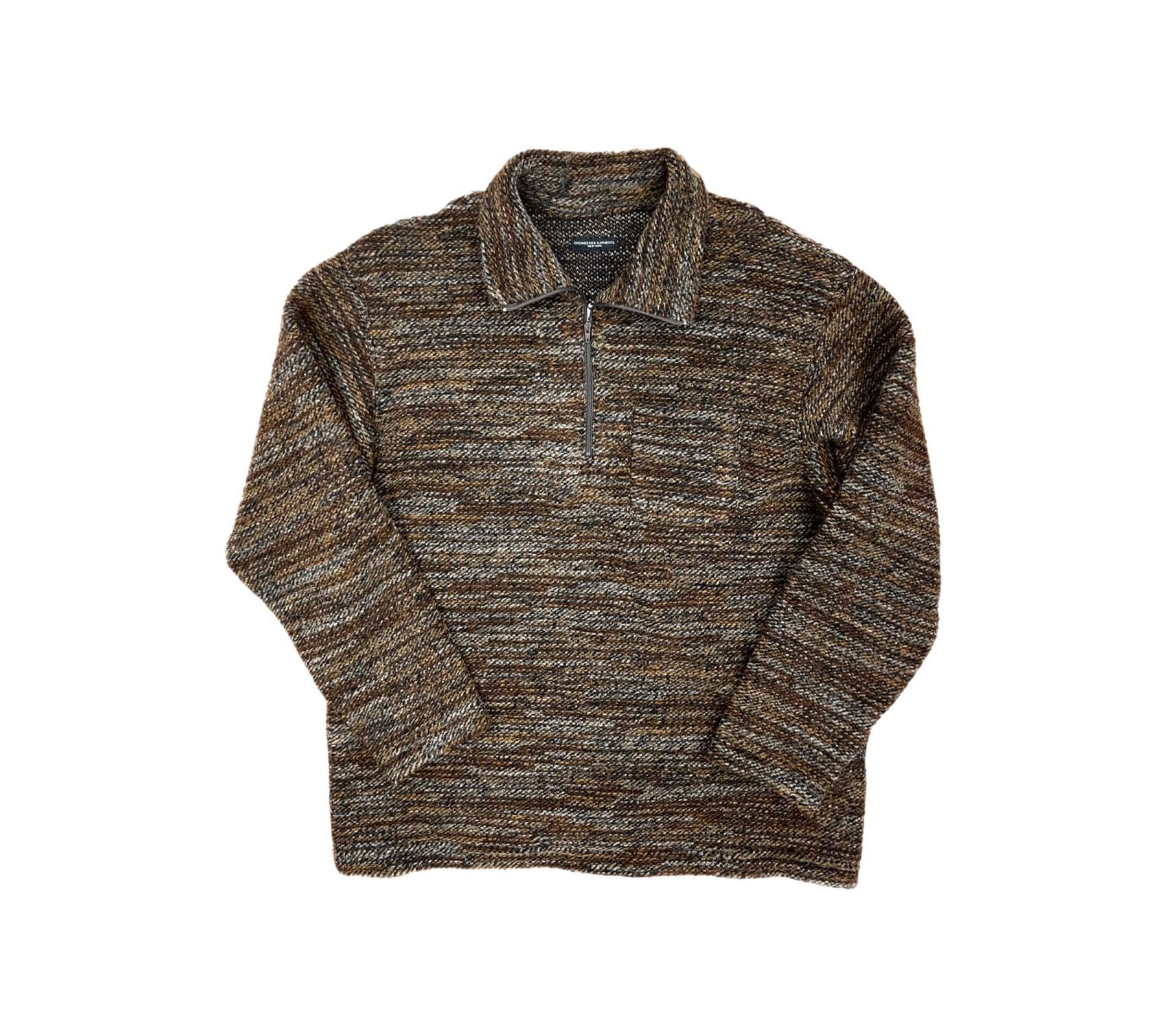 Zip Mock Neck Sweater | Brown Wool Poly Nep